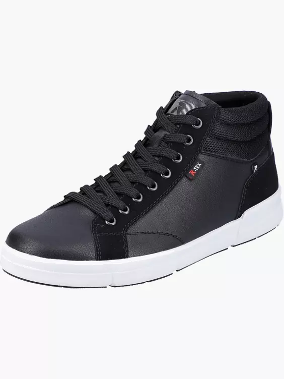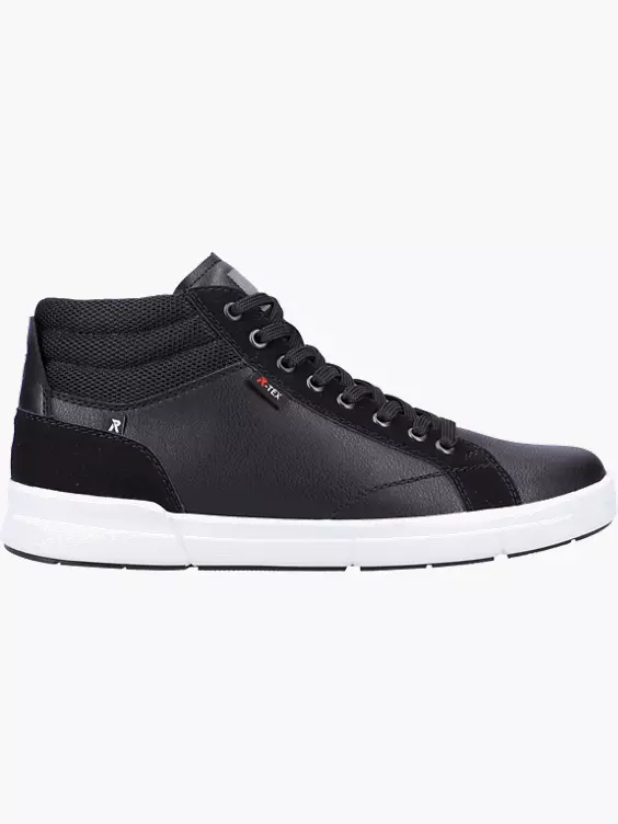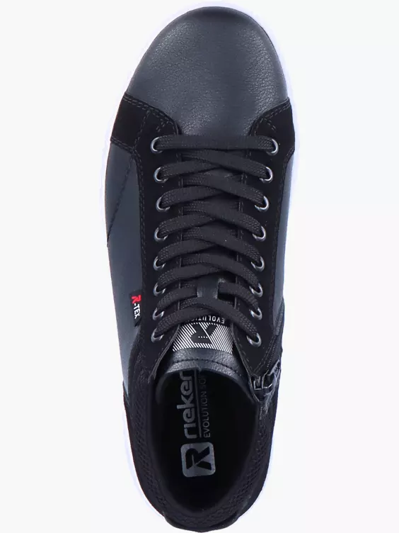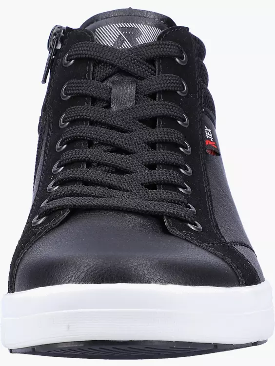 Fashion meets Function! Dieser lässige Rieker EVOLUTION Sneaker präsentiert sich in zwei Schwarztönen und heller Sohle. Dabei ist der Sneaker nicht nur super trendy, auch in Sachen Komfort hat er jede Menge zu bieten: Durch die besondere Komfortweite wird das Hineinschlüpfen zum Kinderspiel! Die praktische Reißverschluss-Schnür-Kombi sorgt für optimalen Halt und ein angenehmes Tragegefühl. Ein weiteres Extra: Die wasserabweisende Rieker TEX-Technologie!